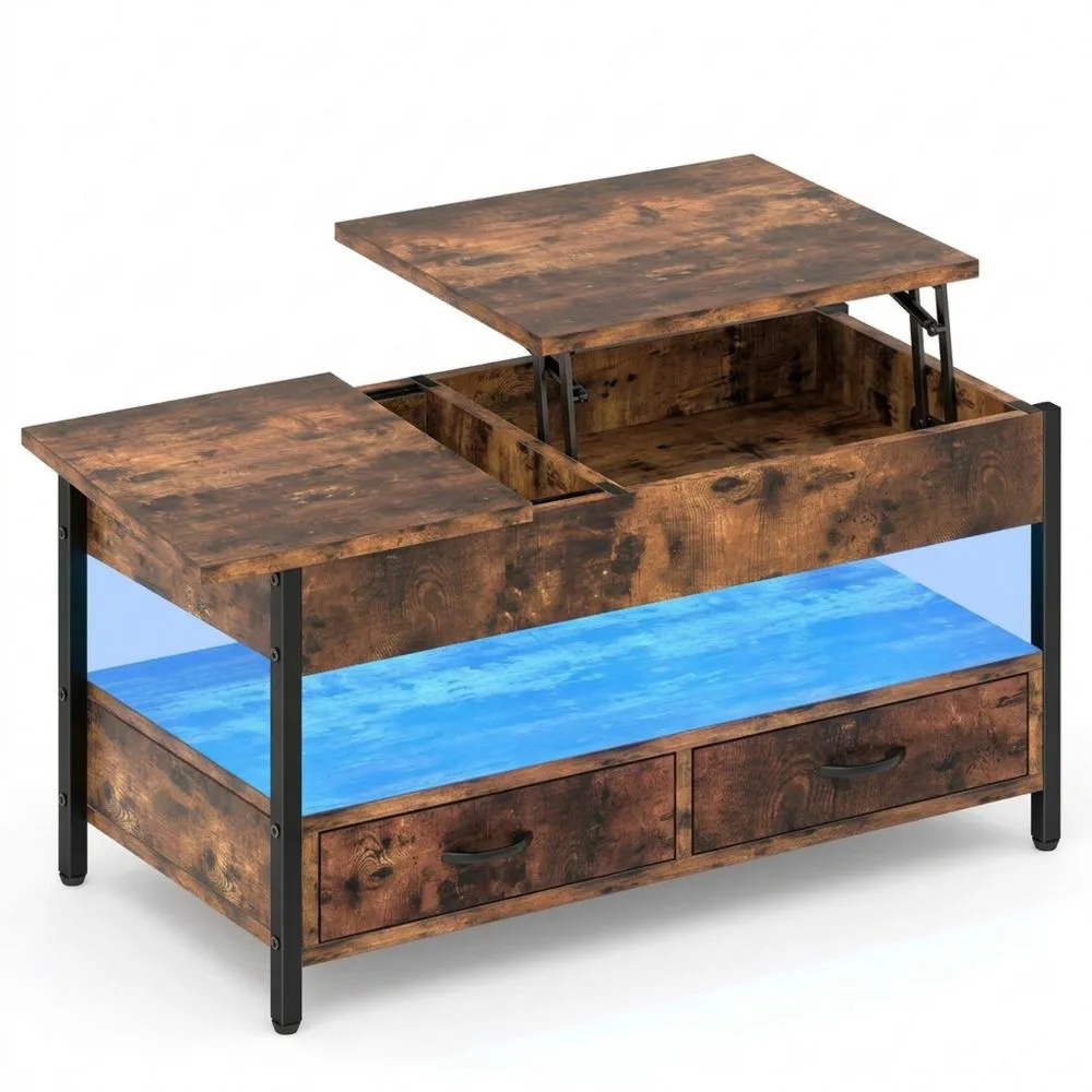 Höhenverstellbarer Wohnzimmertisch mit Stauraum und LED-Beleuchtung