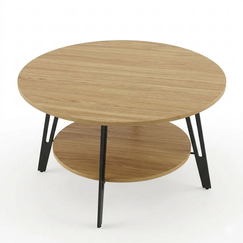 Runder Couchtisch aus Holz mit Stauraum und Metallfuß