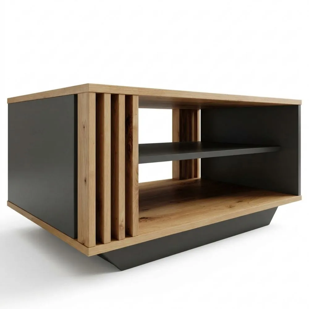 Moderner rechteckiger Kaffeetisch mit Lamellen und Ablage für das Wohnzimmer