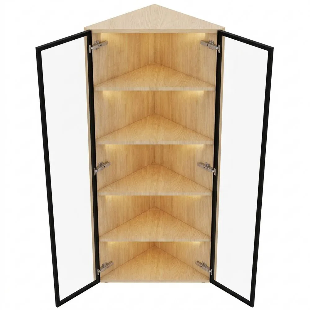 Materialien aus strapazierfähigem MDF und Aluminiumrahmen kombiniert mit Sicherheitsglas bieten Stabilität. LED-Beleuchtung in den Regalen sorgt für passende Ausleuchtung. Die Abmessungen von 62 x 35 x 160 cm ermöglichen eine effiziente Raumnutzung. Soft-Close-Scharniere garantieren ein leises Schließen der Türen. Diese Glasvitrine eignet sich zur Präsentation verschiedener Sammlerstücke.