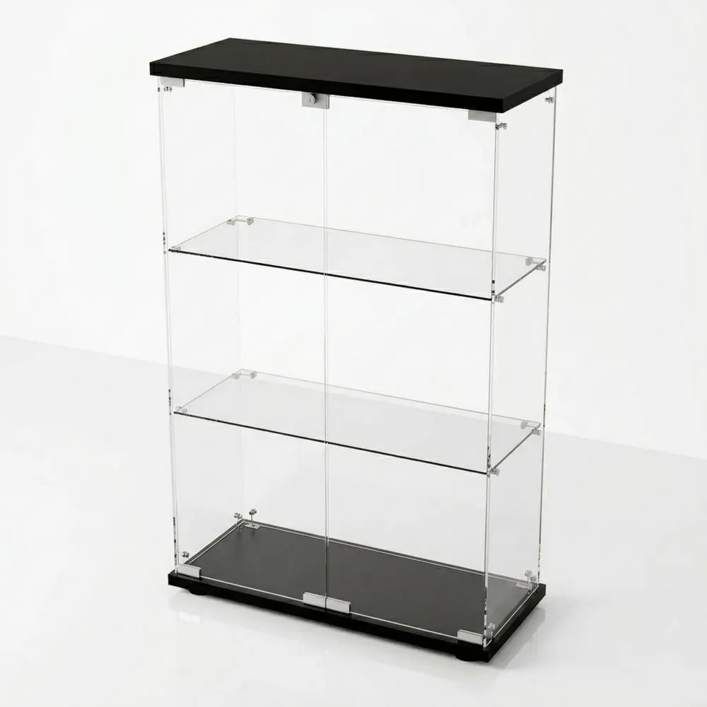 Die Glasvitrine hat Abmessungen von 125x79x36,5cm und vier Regalen. Die höhenverstellbare Bodenplatte passt sich verschiedenen Bodenverhältnissen an. Erhältlich in Schwarz und Weiß. Gefertigt aus 5 mm dickem gehärtetem Sicherheitsglas mit Stoßleiste für erhöhte Sicherheit und tägliche Nutzung. Die wasserfesten Massivholzplatten sind leicht zu reinigen. Die Vitrine kann als Präsentations- oder Aufbewahrungslösung für verschiedene Gegenstände genutzt werden. Ein Sicherheitsschloss schützt die Inhalte. Sie lässt sich schnell montieren, eine Installation ist ohne Vorkenntnisse möglich. Das Design kombiniert Minimalismus mit klaren Linien, passend für verschiedene Einrichtungsstile.