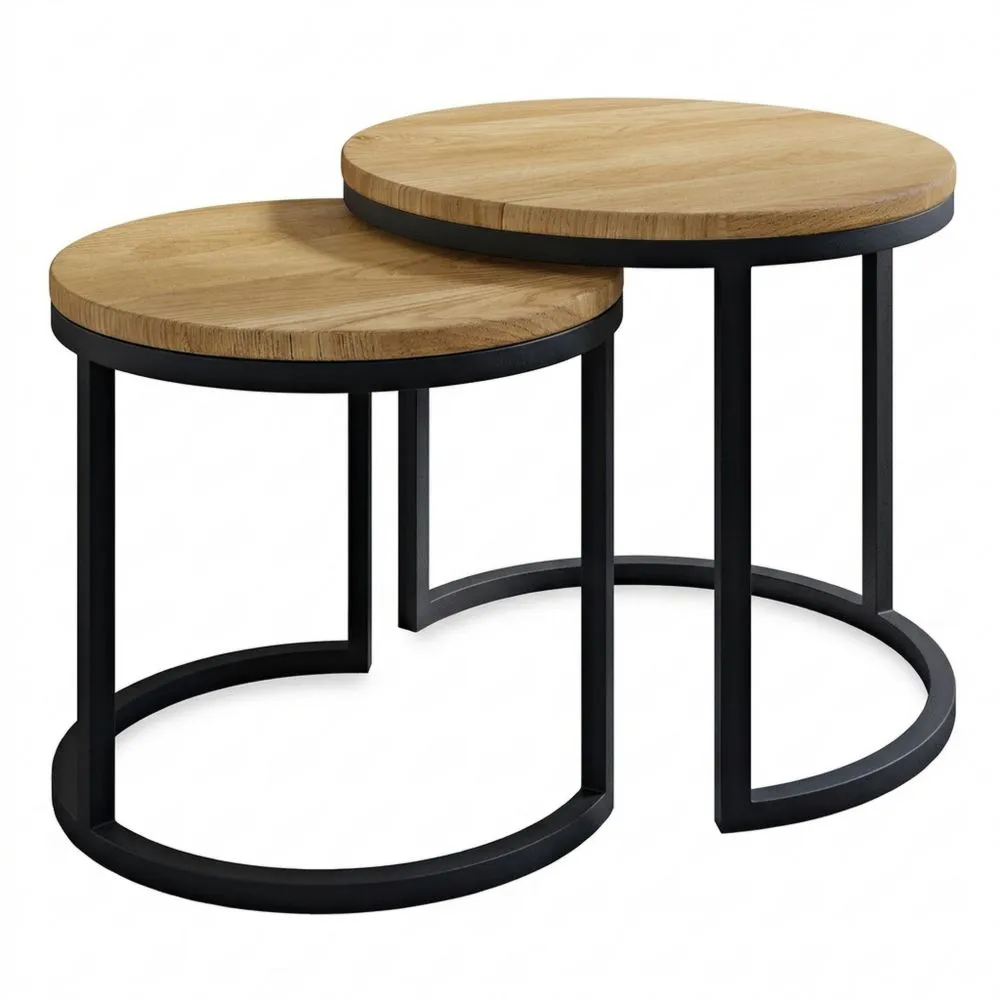Der Sofatisch besticht durch ein einfaches Design, das natürliches Holz und Stahl kombiniert. Die Tische mit den Maßen 50 x 43 cm sind für verschiedene Einrichtungsstile geeignet. Hergestellt aus Eichenholz und mit einem Edelstahlrahmen bietet das Produkt Langlebigkeit. Die Oberfläche ist geölt, um die Holzmaserung zu betonen. Das minimalistische Design passt in moderne Wohnräume. Die Tische lassen sich platzsparend ineinander schieben.